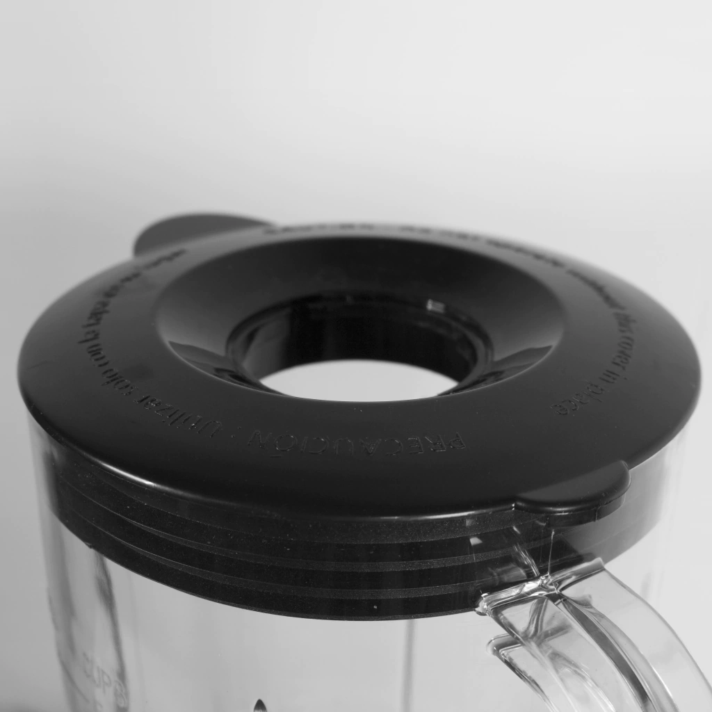 Disfrutá de cuchillas de acero inoxidable con porta cuchillas de 4 hojas, ideales para un triturado eficiente y duradero. La tapa con sistema anti derrame y la sobretapa dosificadora permiten que cocines sin preocupaciones. Además, los soportes antideslizantes mantienen la licuadora firme en todo momento.